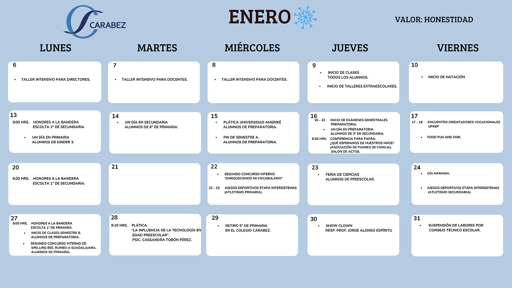 El Colegio Cárabez tiene como misión formar integralmente personas competentes, que vivan los valores éticos y humanos, comprometidos en el ámbito social, ecológico, económico, cultural y deportivo, preparados para un mundo global.