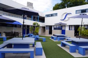 • Área de convivencia, con mesas, bancas y sombrillas
