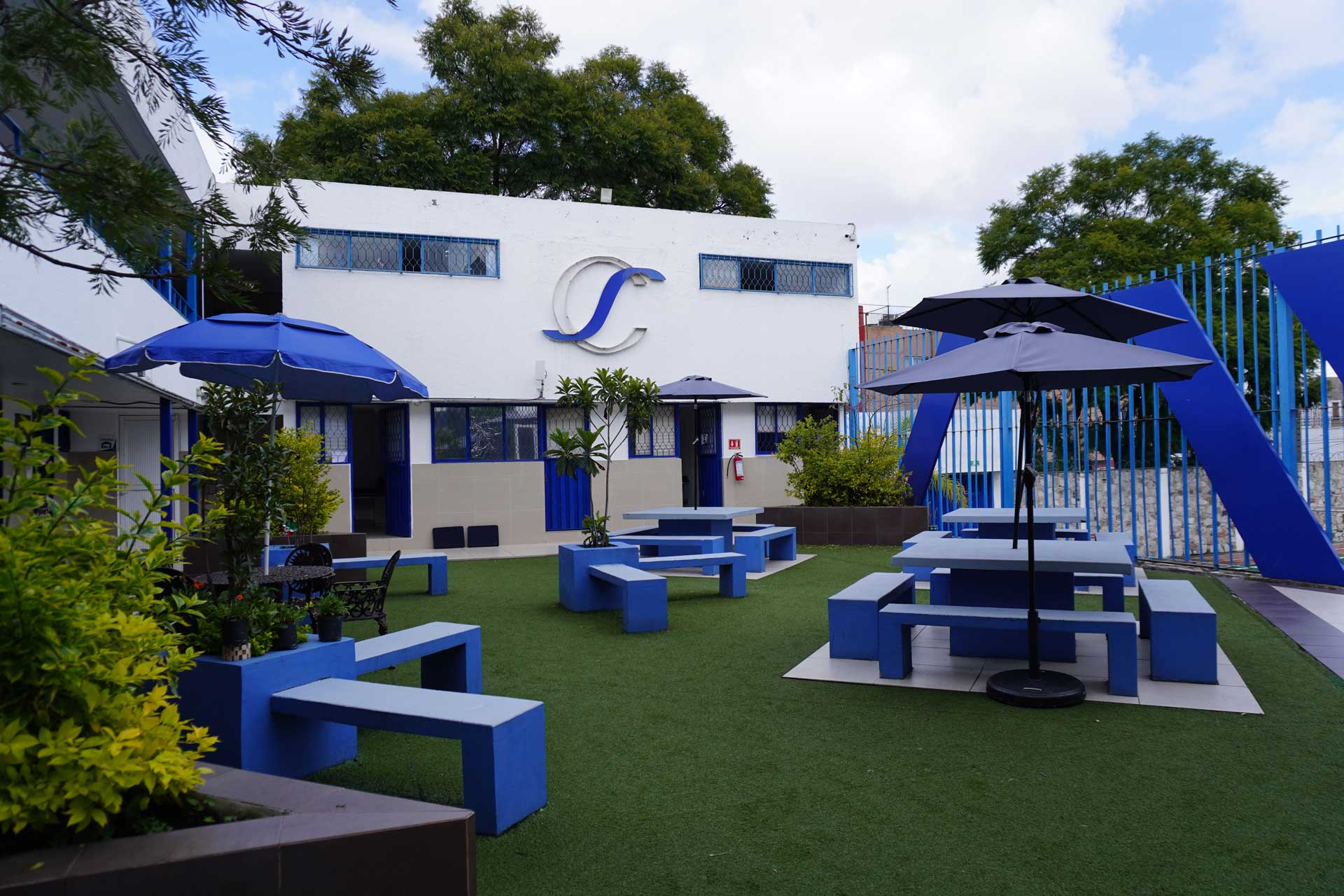 • Área de convivencia, con mesas, bancas y sombrillas